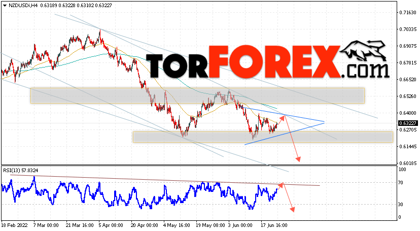 Таким образом, Форекс прогноз и аналитика NZD/USD на 28 июня 2022 предполагает попытку теста области сопротивления вблизи уровня 0.6385. Откуда стоит ожидать продолжения падения котировок в область ниже уровня 0.6025. Дополнительным сигналом в пользу снижения выступит тест линии тренда на индикаторе относительной силы. Отменой варианта падения пары NZD/USD станет сильный рост цены и пробой уровня 0.6435. В этом случае стоит ожидать продолжение подъёма пары с потенциальной целью выше уровня 0.6645.