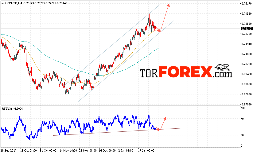 Таким образом, Форекс прогноз и аналитика NZD/USD на 31 января 2018 предполагает попытку теста нижней границы канала вблизи уровня 0.7290, откуда стоит ожидать продолжения роста котировок в область выше уровня 0.7520, дополнительным сигналом в пользу роста выступит тест линии поддержки на индикаторе относительной силы, отменой варианта роста пары NZD/USD станет падение и пробой уровня 0.7270.