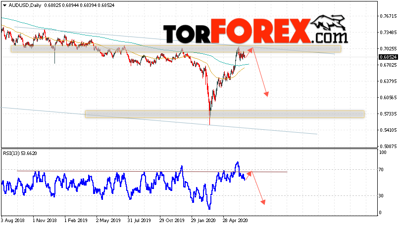 Таким образом, Форекс прогноз AUD/USD на 29 июня — 3 июля 2020 предполагает попытку развития коррекции и теста уровня 0.7035. Далее, продолжение падения валютной пары ниже уровня 0.6055. В пользу снижения пары на текущий торговой неделе выступит тест линии тренда на индикаторе относительной силы. Отменой варианта падения станет сильный рост и пробой области 0.7205. Это укажет на пробой области сопротивления и продолжение роста пары с целью выше 0.7575.