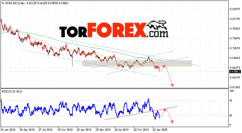 Таким образом, Форекс прогноз AUD/USD на 24 — 28 февраля 2020 предполагает попытку теста уровня 0.6715. Далее, продолжение падения ниже уровня 0.6145. В пользу снижения пары выступит тест нисходящей линии тренда на индикаторе относительной силы. Отменой варианта падения станет сильный рост и пробой области 0.7035. Это укажет на пробой области сопротивления и продолжение роста пары с целью выше 0.7305.