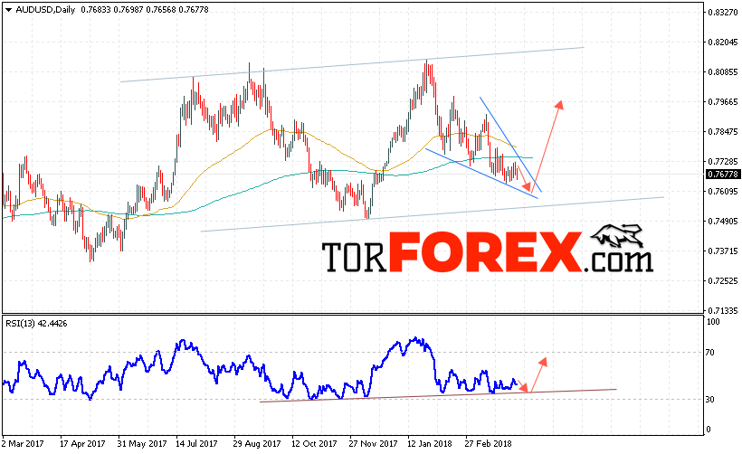 Таким образом, Форекс прогноз AUD/USD на неделю 9 — 13 апреля 2018 предполагает попытку теста уровня 0.7600 и продолжение роста выше уровня 0.7950, в пользу роста пары выступит тест линии поддержки и на индикаторе относительной силы, отменой варианта роста станет пробой области 0.7500, что укажет на пробой нижней границы восходящего канала и продолжение падения пары.