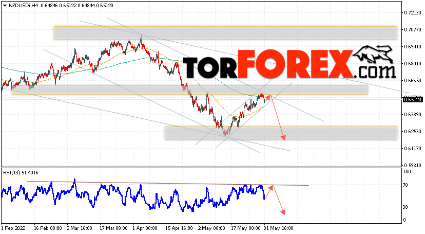 Таким образом, Форекс прогноз и аналитика NZD/USD на 1 июня 2022 предполагает попытку теста области сопротивления вблизи уровня 0.6545. Откуда стоит ожидать продолжения падения котировок в область ниже уровня 0.6235. Дополнительным сигналом в пользу снижения выступит тест линии тренда на индикаторе относительной силы. Отменой варианта падения пары NZD/USD станет сильный рост цены и пробой уровня 0.6695. В этом случае стоит ожидать продолжение подъёма пары с потенциальной целью выше уровня 0.6925.