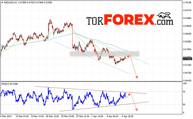 Таким образом, Форекс прогноз и аналитика NZD/USD на 10 апреля 2019 предполагает попытку теста области сопротивления вблизи уровня 0.6755. Откуда стоит ожидать продолжения падения котировок в область ниже уровня 0.6640. Дополнительным сигналом в пользу падения выступит тест линии тренда на индикаторе относительной силы. Отменой варианта снижения пары NZD/USD станет сильный рост и пробой уровня 0.6805. В этом случае стоит ожидать продолжения подъёма пары с потенциальной целью выше 0.6915.