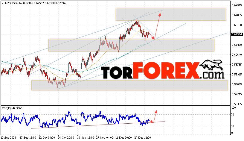 Таким образом, Форекс прогноз и аналитика NZD/USD на 10 января 2024 предполагает попытку теста области поддержки вблизи уровня 0.6165. Откуда стоит ожидать продолжения роста котировок в область выше уровня 0.6425. Дополнительным сигналом в пользу подъёма выступит тест линии тренда на индикаторе относительной силы. Отменой варианта роста пары NZD/USD станет падение цены и пробой уровня 0.6105. В этом случае стоит ожидать продолжение снижения пары с потенциальной целью ниже уровня 0.5875.