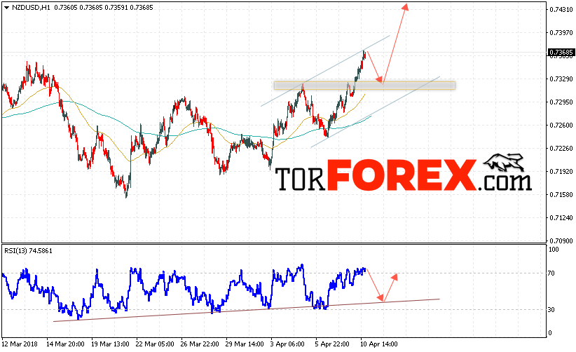 Таким образом, Форекс прогноз и аналитика NZD/USD на 11 апреля 2018 предполагает попытку теста области поддержки вблизи уровня 0.7330, откуда стоит ожидать продолжения роста котировок в область выше уровня 0.7450, дополнительным сигналом в пользу роста выступит тест линии поддержки на индикаторе относительной силы, отменой варианта роста пары NZD/USD станет падение и пробой уровня 0.7280, в этом случае стоит ожидать продолжения падения.