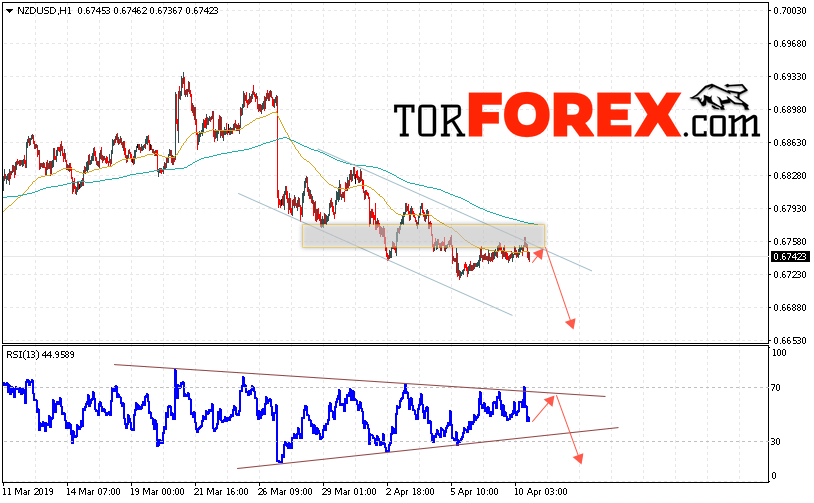 Таким образом, Форекс прогноз и аналитика NZD/USD на 11 апреля 2019 предполагает попытку теста области сопротивления вблизи уровня 0.6750. Откуда стоит ожидать продолжения падения котировок в область ниже уровня 0.6645. Дополнительным сигналом в пользу падения выступит тест линии тренда на индикаторе относительной силы. Отменой варианта снижения пары NZD/USD станет сильный рост и пробой уровня 0.6805. В этом случае стоит ожидать продолжения подъёма пары с потенциальной целью выше 0.6915.