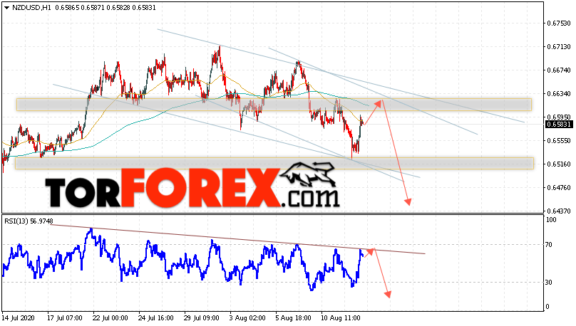 Таким образом, Форекс прогноз и аналитика NZD/USD на 13 августа 2020 предполагает попытку теста области сопротивления вблизи уровня 0.6625. Откуда стоит ожидать продолжения падения котировок в область ниже уровня 0.6435. Дополнительным сигналом в пользу снижения выступит тест линии тренда на индикаторе относительной силы. Отменой варианта падения пары NZD/USD станет сильный рост цен и пробой уровня 0.6705. В этом случае стоит ожидать продолжение подъёма пары с потенциальной целью выше уровня 0.6925.