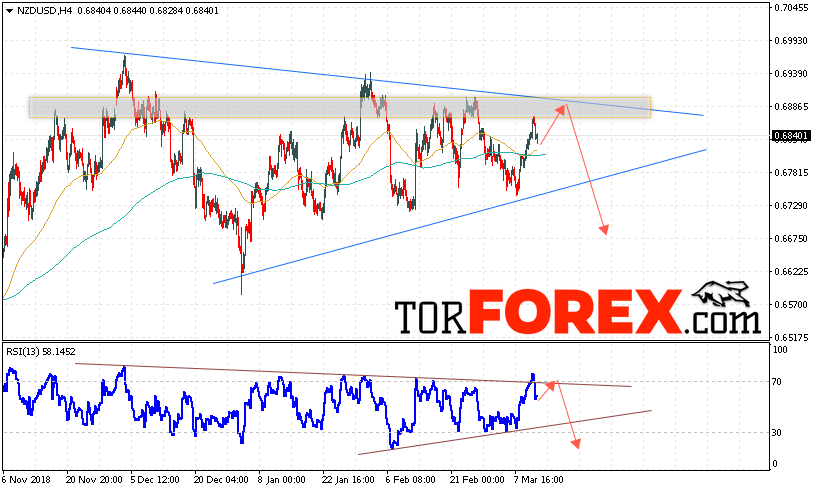 Таким образом, Форекс прогноз и аналитика NZD/USD на 14 марта 2019 предполагает попытку теста области сопротивления вблизи уровня 0.6875. Откуда стоит ожидать продолжения падения котировок в область ниже уровня 0.6675. Дополнительным сигналом в пользу падения выступит тест линии тренда на индикаторе относительной силы. Отменой варианта снижения пары NZD/USD станет сильный рост и пробой уровня 0.6925. В этом случае стоит ожидать продолжения подъёма пары с потенциальной целью выше 0.7075.