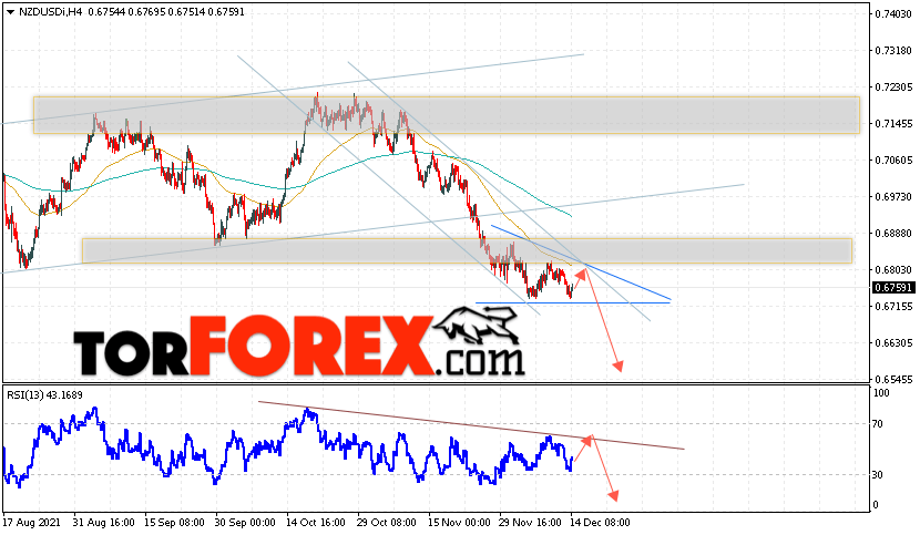 Таким образом, Форекс прогноз и аналитика NZD/USD на 15 декабря 2021 предполагает попытку теста области сопротивления вблизи уровня 0.6795. Откуда стоит ожидать продолжения падения котировок в область ниже уровня 0.6575. Дополнительным сигналом в пользу снижения выступит тест линии тренда на индикаторе относительной силы. Отменой варианта падения пары NZD/USD станет сильный рост цены и пробой уровня 0.6905. В этом случае стоит ожидать продолжение подъёма пары с потенциальной целью выше уровня 0.7205.