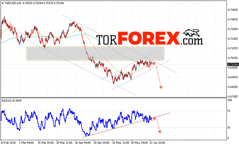 Таким образом, Форекс прогноз и аналитика NZD/USD на 15 июня 2018 предполагает попытку теста области сопротивления вблизи уровня 0.7050, откуда стоит ожидать продолжения падения котировок в область ниже уровня 0.6815, дополнительным сигналом в пользу падения выступит тест линии сопротивления на индикаторе относительной силы, отменой варианта снижения пары NZD/USD станет сильный рост и пробой уровня 0.7100, в этом случае стоит ожидать продолжения роста пары.