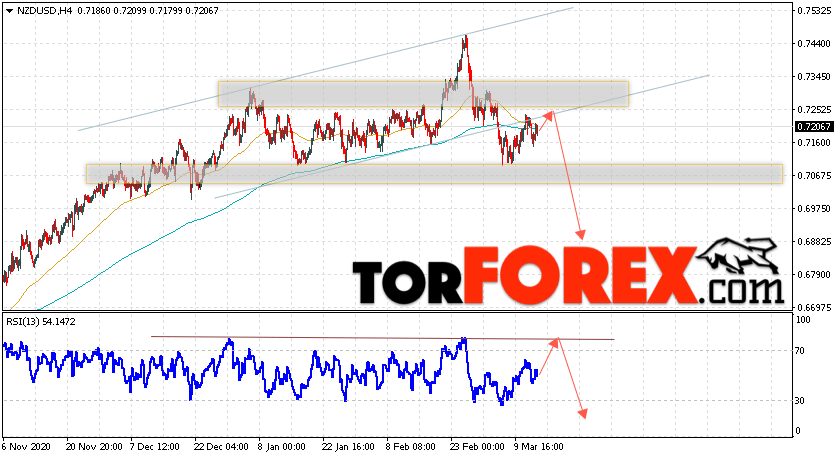 Таким образом, Форекс прогноз и аналитика NZD/USD на 16 марта 2021 предполагает попытку теста области сопротивления вблизи уровня 0.7245. Откуда стоит ожидать продолжения падения котировок в область ниже уровня 0.6885. Дополнительным сигналом в пользу падения выступит тест линии тренда на индикаторе относительной силы. Отменой варианта снижения пары NZD/USD станет сильный рост цены и пробой уровня 0.7395. В этом случае стоит ожидать продолжение подъёма пары с потенциальной целью выше уровня 0.7675.