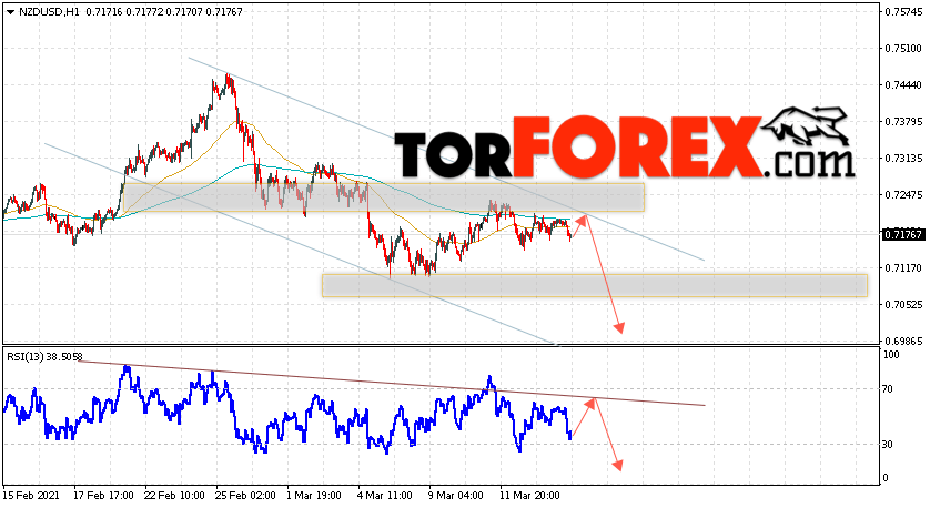 Таким образом, Форекс прогноз и аналитика NZD/USD на 17 марта 2021 предполагает попытку теста области сопротивления вблизи уровня 0.7205. Откуда стоит ожидать продолжения падения котировок в область ниже уровня 0.6875. Дополнительным сигналом в пользу падения выступит тест линии тренда на индикаторе относительной силы. Отменой варианта снижения пары NZD/USD станет сильный рост цены и пробой уровня 0.7305. В этом случае стоит ожидать продолжение подъёма пары с потенциальной целью выше уровня 0.7645.