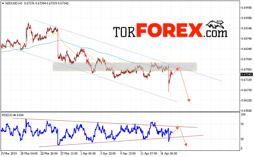 Таким образом, Форекс прогноз и аналитика NZD/USD на 18 апреля 2019 предполагает попытку теста области сопротивления вблизи уровня 0.6765. Откуда стоит ожидать продолжения падения котировок в область ниже уровня 0.6635. Дополнительным сигналом в пользу падения выступит тест линии сопротивления на индикаторе относительной силы. Отменой варианта снижения пары NZD/USD станет сильный рост и пробой уровня 0.6820. В этом случае стоит ожидать продолжения подъёма пары с потенциальной целью выше 0.6925.