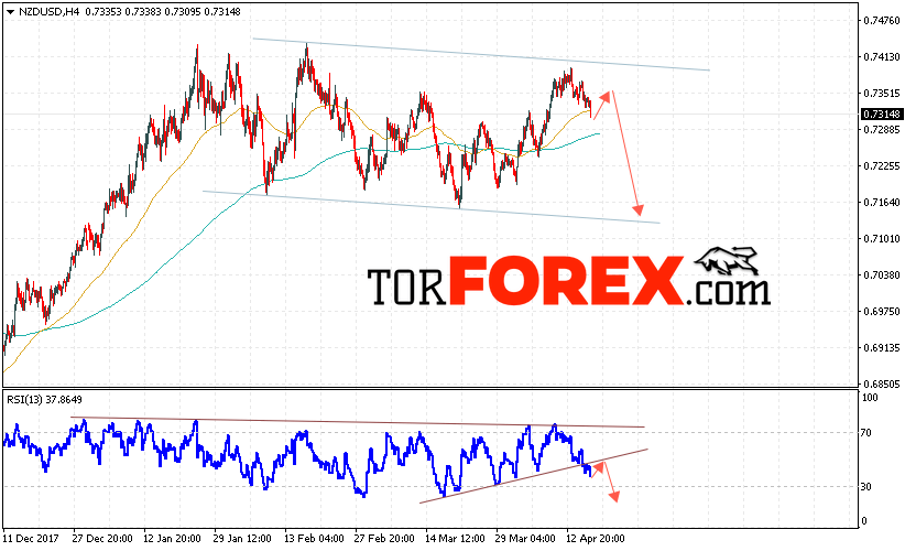 Таким образом, Форекс прогноз и аналитика NZD/USD на 19 апреля 2018 предполагает попытку теста области сопротивления вблизи уровня 0.7350, откуда стоит ожидать продолжения падения котировок в область ниже уровня 0.7160, дополнительным сигналом в пользу падения выступит тест линии сопротивления на индикаторе относительной силы, отменой варианта снижения пары NZD/USD станет сильный рост и пробой уровня 0.7435, в этом случае стоит ожидать продолжения роста пары.