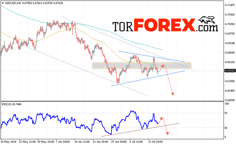 Таким образом, Форекс прогноз и аналитика NZD/USD на 19 июля 2018 предполагает попытку теста области сопротивления вблизи уровня 0.6800, откуда стоит ожидать продолжения снижения котировок в область ниже уровня 0.6620, дополнительным сигналом в пользу падения выступит формование разворотной модели на индикаторе относительной силы, отменой варианта снижения пары NZD/USD станет сильный рост и пробой уровня 0.6860, в этом случае стоит ожидать продолжения роста пары.