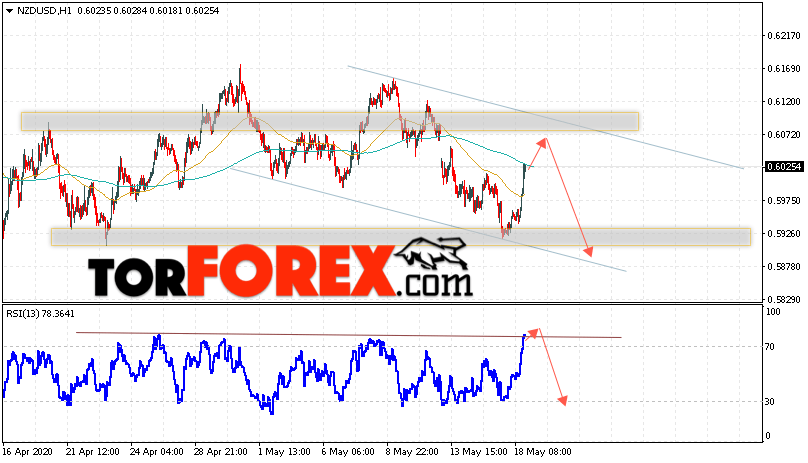 Таким образом, Форекс прогноз и аналитика NZD/USD на 19 мая 2020 предполагает попытку теста области сопротивления вблизи уровня 0.6065. Откуда стоит ожидать продолжения падения котировок в область ниже уровня 0.5875. Дополнительным сигналом в пользу снижения выступит тест линии тренда на индикаторе относительной силы. Отменой варианта падения пары NZD/USD станет сильный рост и пробой уровня 0.6135. В этом случае стоит ожидать продолжение подъёма пары с потенциальной целью выше уровня 0.6345.