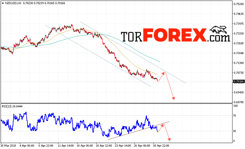Таким образом, Форекс прогноз и аналитика NZD/USD на 2 мая 2018 предполагает попытку теста области сопротивления вблизи уровня 0.7070, откуда стоит ожидать продолжения падения котировок в область ниже уровня 0.6880, дополнительным сигналом в пользу падения выступит тест линии сопротивления на индикаторе относительной силы, отменой варианта снижения пары NZD/USD станет сильный рост и пробой уровня 0.7120, в этом случае стоит ожидать продолжения роста пары.