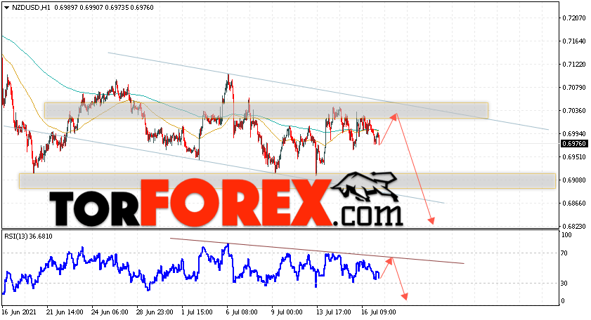 Таким образом, Форекс прогноз и аналитика NZD/USD на 20 июля 2021 предполагает попытку теста области сопротивления вблизи уровня 0.7035. Откуда стоит ожидать продолжения падения котировок в область ниже уровня 0.6825. Дополнительным сигналом в пользу снижения выступит тест линии тренда на индикаторе относительной силы. Отменой варианта падения пары NZD/USD станет сильный рост цены и пробой уровня 0.7105. В этом случае стоит ожидать продолжение подъёма пары с потенциальной целью выше уровня 0.7325.