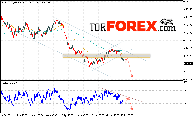 Таким образом, Форекс прогноз и аналитика NZD/USD на 20 июня 2018 предполагает попытку теста области сопротивления вблизи уровня 0.6950, откуда стоит ожидать продолжения падения котировок в область ниже уровня 0.6745, дополнительным сигналом в пользу падения выступит тест линии сопротивления на индикаторе относительной силы, отменой варианта снижения пары NZD/USD станет сильный рост и пробой уровня 0.7020, в этом случае стоит ожидать продолжения роста пары.