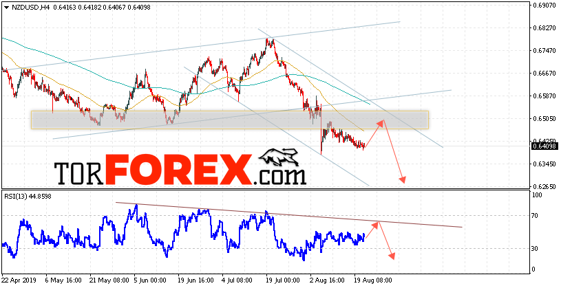 Таким образом, Форекс прогноз и аналитика NZD/USD на 22 августа 2019 предполагает попытку теста области сопротивления вблизи уровня 0.6495. Откуда стоит ожидать продолжения падения котировок в область ниже уровня 0.6265. Дополнительным сигналом в пользу снижения выступит тест линии сопротивления на индикаторе относительной силы. Отменой варианта падения пары NZD/USD станет сильный рост и пробой уровня 0.6565. В этом случае стоит ожидать продолжения подъёма пары с потенциальной целью выше уровня 0.6695.