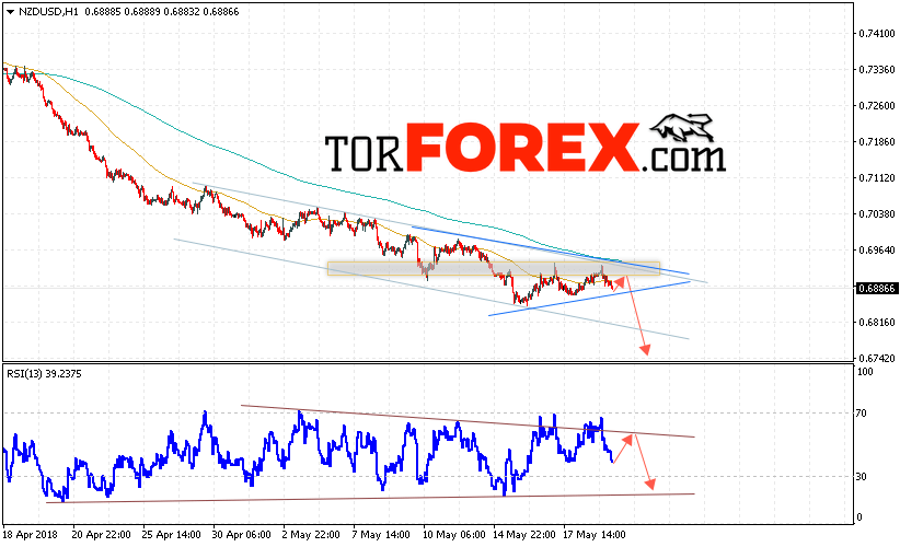 Таким образом, Форекс прогноз и аналитика NZD/USD на 22 мая 2018 предполагает попытку теста области сопротивления вблизи уровня 0.6910, откуда стоит ожидать продолжения падения котировок в область ниже уровня 0.6740, дополнительным сигналом в пользу падения выступит тест линии сопротивления на индикаторе относительной силы, отменой варианта снижения пары NZD/USD станет сильный рост и пробой уровня 0.6960, в этом случае стоит ожидать продолжения роста пары.