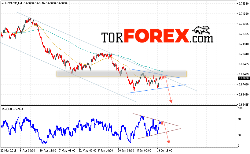 Таким образом, Форекс прогноз и аналитика NZD/USD на 20 июля 2018 предполагает попытку теста области сопротивления вблизи уровня 0.6820, откуда стоит ожидать продолжения снижения котировок в область ниже уровня 0.6580, дополнительным сигналом в пользу падения выступит тест линии тренда на индикаторе относительной силы, отменой варианта снижения пары NZD/USD станет сильный рост и пробой уровня 0.6890, в этом случае стоит ожидать продолжения роста пары.