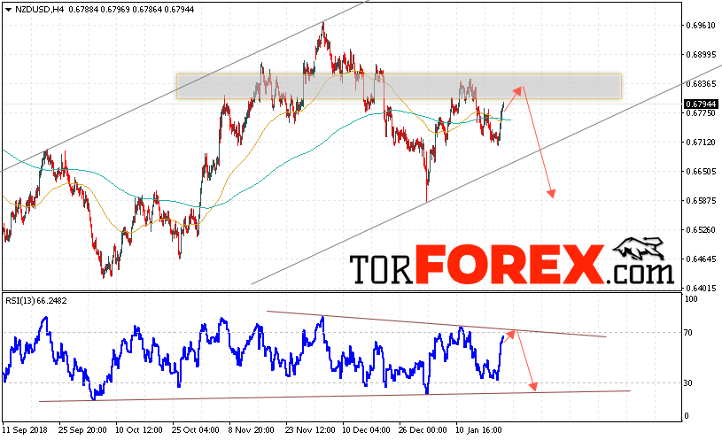 Таким образом, Форекс прогноз и аналитика NZD/USD на 24 января 2019 предполагает попытку теста области сопротивления вблизи уровня 0.6835. Откуда стоит ожидать продолжения падения котировок в область ниже уровня 0.6585. Дополнительным сигналом в пользу снижения выступит тест линии тренда на индикаторе относительной силы. Отменой варианта падения пары NZD/USD станет сильный рост и пробой уровня 0.6875. В этом случае стоит ожидать продолжения роста пары с потенциальной целью выше 0.6965.