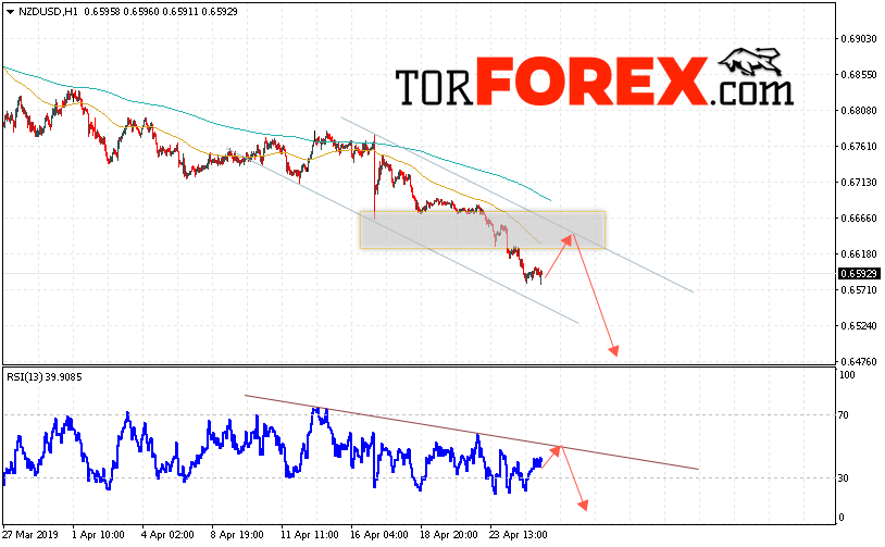 Таким образом, Форекс прогноз и аналитика NZD/USD на 26 апреля 2019 предполагает попытку теста области сопротивления вблизи уровня 0.6635. Откуда стоит ожидать продолжения падения котировок в область ниже уровня 0.6475. Дополнительным сигналом в пользу падения выступит тест линии сопротивления на индикаторе относительной силы. Отменой варианта снижения пары NZD/USD станет сильный рост и пробой уровня 0.6705. В этом случае стоит ожидать продолжения подъёма пары с потенциальной целью выше 0.6815.