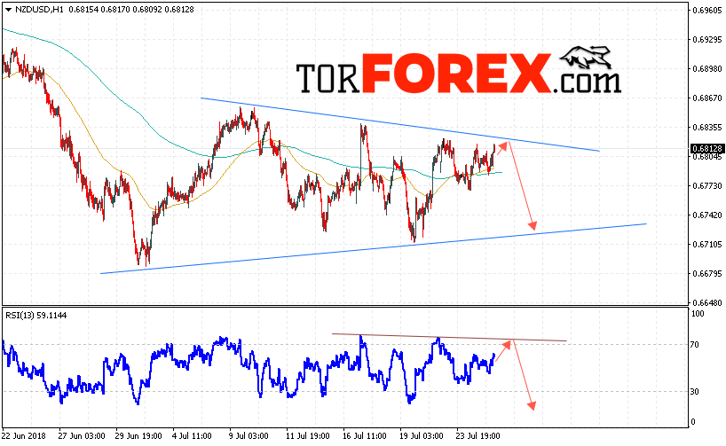 Таким образом, Форекс прогноз и аналитика NZD/USD на 26 июля 2018 предполагает попытку теста области сопротивления вблизи уровня 0.6825, откуда стоит ожидать продолжения снижения котировок в область ниже уровня 0.6730, дополнительным сигналом в пользу падения выступит тест линии тренда на индикаторе относительной силы, отменой варианта снижения пары NZD/USD станет сильный рост и пробой уровня 0.6855, в этом случае стоит ожидать продолжения роста пары.