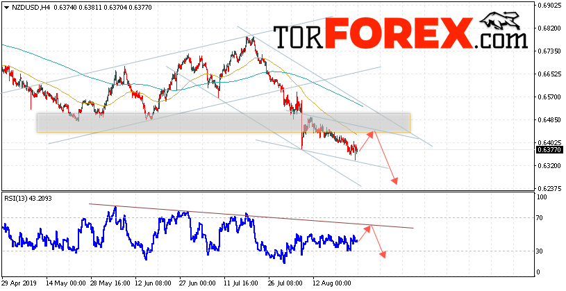 Таким образом, Форекс прогноз и аналитика NZD/USD на 27 августа 2019 предполагает попытку теста области сопротивления вблизи уровня 0.6415. Откуда стоит ожидать продолжения падения котировок в область ниже уровня 0.6235. Дополнительным сигналом в пользу снижения выступит тест линии сопротивления на индикаторе относительной силы. Отменой варианта падения пары NZD/USD станет сильный рост и пробой уровня 0.6505. В этом случае стоит ожидать продолжения подъёма пары с потенциальной целью выше уровня 0.6585.