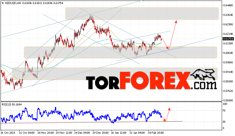 Таким образом, Форекс прогноз и аналитика NZD/USD на 27 февраля 2024 предполагает попытку теста области поддержки вблизи уровня 0.6160. Откуда стоит ожидать продолжения роста котировок в область выше уровня 0.6275. Дополнительным сигналом в пользу подъёма выступит тест линии тренда на индикаторе относительной силы. Отменой варианта роста пары NZD/USD станет падение цены и пробой уровня 0.6105. В этом случае стоит ожидать продолжение снижения пары с потенциальной целью ниже уровня 0.5925.