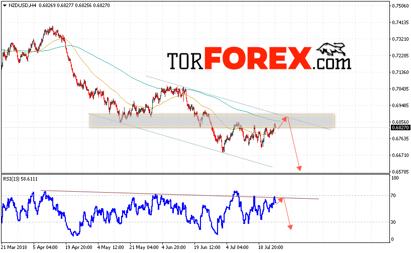 Таким образом, Форекс прогноз и аналитика NZD/USD на 27 июля 2018 предполагает попытку теста области сопротивления вблизи уровня 0.6860, откуда стоит ожидать продолжения снижения котировок в область ниже уровня 0.6580, дополнительным сигналом в пользу падения выступит тест линии тренда на индикаторе относительной силы, отменой варианта снижения пары NZD/USD станет сильный рост и пробой уровня 0.6895, в этом случае стоит ожидать продолжения роста пары.