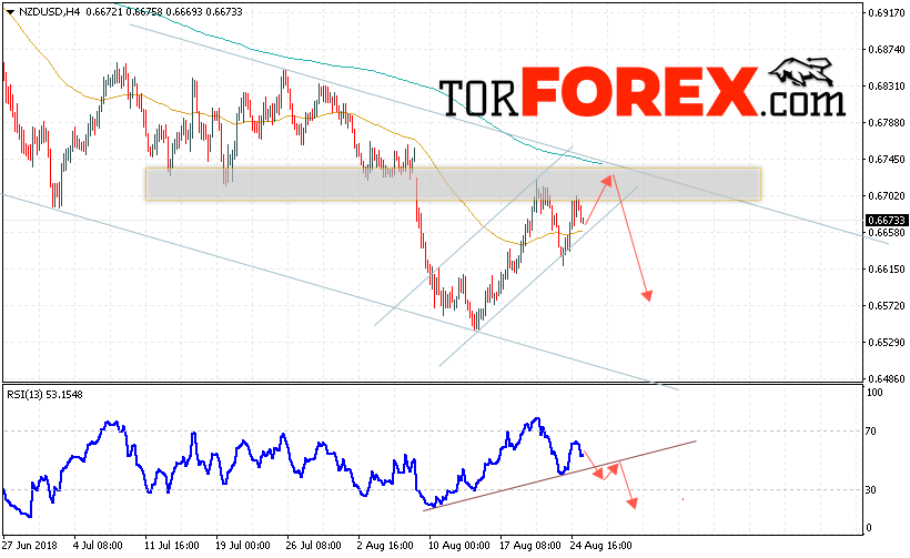 Таким образом, Форекс прогноз и аналитика NZD/USD на 28 августа 2018 предполагает попытку теста области сопротивления вблизи уровня 0.6720, откуда стоит ожидать продолжения снижения котировок в область ниже уровня 0.6570, дополнительным сигналом в пользу падения выступит пробой линии тренда на индикаторе относительной силы, отменой варианта снижения пары NZD/USD станет сильный рост и пробой уровня 0.6765, в этом случае стоит ожидать продолжения роста пары.