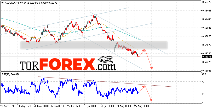 Таким образом, Форекс прогноз и аналитика NZD/USD на 29 августа 2019 предполагает попытку теста области сопротивления вблизи уровня 0.6425. Откуда стоит ожидать продолжения падения котировок в область ниже уровня 0.6185. Дополнительным сигналом в пользу снижения выступит тест линии сопротивления на индикаторе относительной силы. Отменой варианта падения пары NZD/USD станет сильный рост и пробой уровня 0.6505. В этом случае стоит ожидать продолжения подъёма пары с потенциальной целью выше уровня 0.6675.