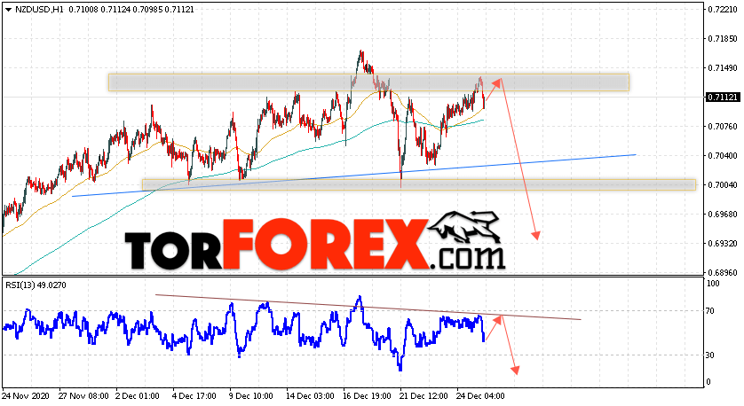 Таким образом, Форекс прогноз и аналитика NZD/USD на 29 декабря 2020 предполагает попытку теста области сопротивления вблизи уровня 0.7125. Откуда стоит ожидать продолжения падения котировок в область ниже уровня 0.6935. Дополнительным сигналом в пользу снижения выступит тест линии тренда на индикаторе относительной силы. Отменой варианта падения пары NZD/USD станет сильный рост цен и пробой уровня 0.7215. В этом случае стоит ожидать продолжение подъёма пары с потенциальной целью выше уровня 0.7475.