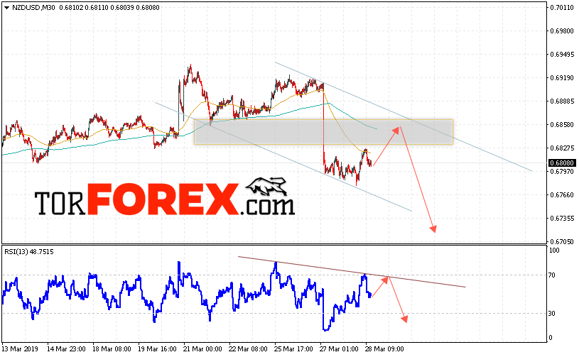 Таким образом, Форекс прогноз и аналитика NZD/USD на 29 марта 2019 предполагает попытку теста области сопротивления вблизи уровня 0.6850. Откуда стоит ожидать продолжения падения котировок в область ниже уровня 0.6705. Дополнительным сигналом в пользу падения выступит тест линии тренда на индикаторе относительной силы. Отменой варианта снижения пары NZD/USD станет сильный рост и пробой уровня 0.6885. В этом случае стоит ожидать продолжения подъёма пары с потенциальной целью выше 0.7045.