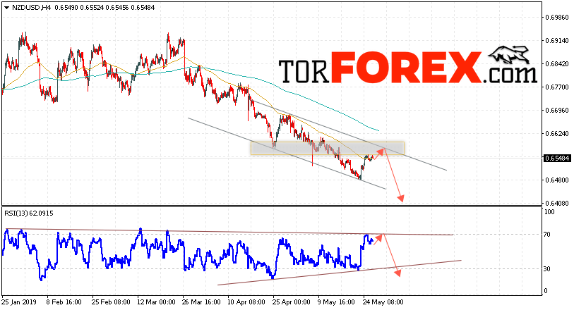 Таким образом, Форекс прогноз и аналитика NZD/USD на 29 мая 2019 предполагает попытку теста области сопротивления вблизи уровня 0.6610. Откуда стоит ожидать продолжения падения котировок в область ниже уровня 0.6405. Дополнительным сигналом в пользу падения выступит тест линии сопротивления на индикаторе относительной силы. Отменой варианта снижения пары NZD/USD станет сильный рост и пробой уровня 0.6645. В этом случае стоит ожидать продолжения подъёма пары с потенциальной целью выше 0.6735.