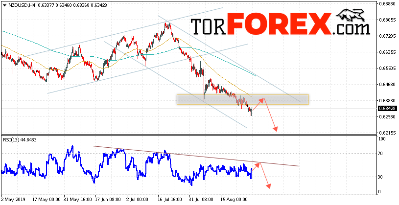 Таким образом, Форекс прогноз и аналитика NZD/USD на 30 августа 2019 предполагает попытку теста области сопротивления вблизи уровня 0.6385. Откуда стоит ожидать продолжения падения котировок в область ниже уровня 0.6185. Дополнительным сигналом в пользу снижения выступит тест линии сопротивления на индикаторе относительной силы. Отменой варианта падения пары NZD/USD станет сильный рост и пробой уровня 0.6475. В этом случае стоит ожидать продолжения подъёма пары с потенциальной целью выше уровня 0.6555.