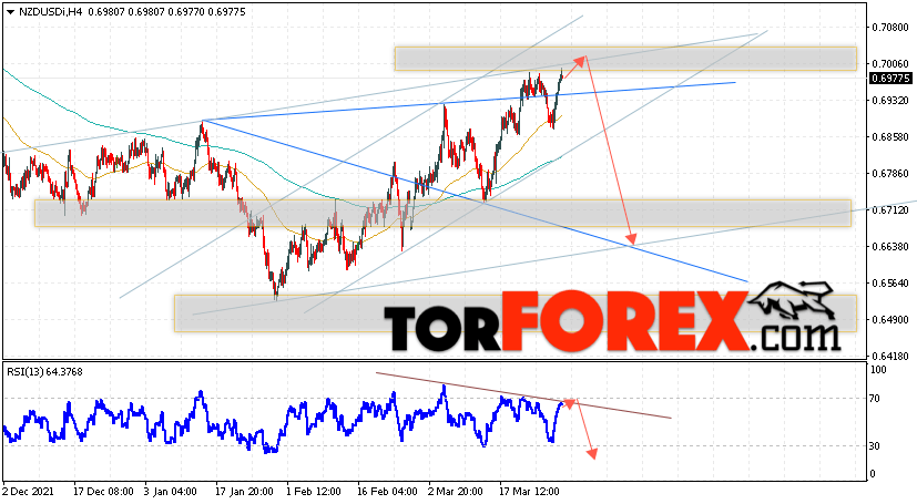 Таким образом, Форекс прогноз и аналитика NZD/USD на 31 марта 2022 предполагает попытку теста области сопротивления вблизи уровня 0.7005. Откуда стоит ожидать продолжения падения котировок в область выше уровня 0.6635. Дополнительным сигналом в пользу снижения выступит тест линии тренда на индикаторе относительной силы. Отменой варианта падения пары NZD/USD станет сильный рост цены и пробой уровня 0.7085. В этом случае стоит ожидать продолжение подъёма пары с потенциальной целью выше уровня 0.7345.