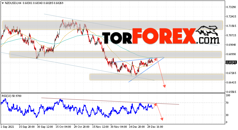 Таким образом, Форекс прогноз и аналитика NZD/USD на 4 января 2022 предполагает попытку теста области сопротивления вблизи уровня 0.6855. Откуда стоит ожидать продолжения падения котировок в область ниже уровня 0.6615. Дополнительным сигналом в пользу снижения выступит тест линии тренда на индикаторе относительной силы. Отменой варианта падения пары NZD/USD станет сильный рост цены и пробой уровня 0.6915. В этом случае стоит ожидать продолжение подъёма пары с потенциальной целью выше уровня 0.7205.