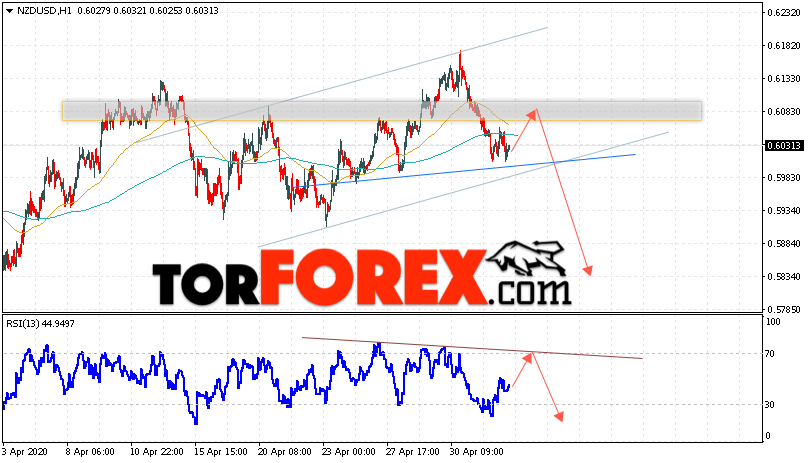 Таким образом, Форекс прогноз и аналитика NZD/USD на 5 мая 2020 предполагает попытку теста области сопротивления вблизи уровня 0.6085. Откуда стоит ожидать продолжения падения котировок в область ниже уровня 0.5835. Дополнительным сигналом в пользу снижения выступит тест линии тренда на индикаторе относительной силы. Отменой варианта падения пары NZD/USD станет сильный рост и пробой уровня 0.6185. В этом случае стоит ожидать продолжение подъёма пары с потенциальной целью выше уровня 0.6355.