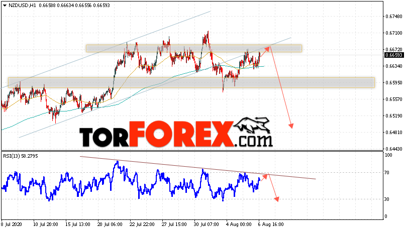 Таким образом, Форекс прогноз и аналитика NZD/USD на 7 августа 2020 предполагает попытку теста области сопротивления вблизи уровня 0.6725. Откуда стоит ожидать продолжения падения котировок в область ниже уровня 0.6485. Дополнительным сигналом в пользу снижения выступит тест линии тренда на индикаторе относительной силы. Отменой варианта падения пары NZD/USD станет сильный рост цен и пробой уровня 0.6755. В этом случае стоит ожидать продолжение подъёма пары с потенциальной целью выше уровня 0.6965.