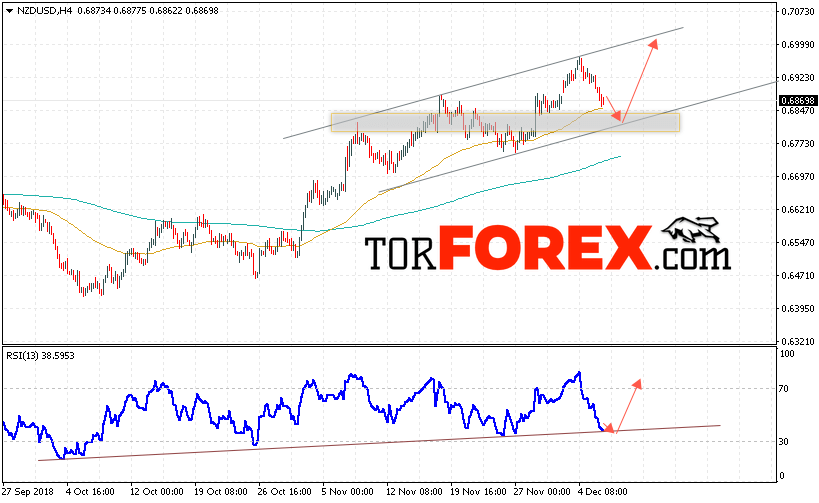 Таким образом, Форекс прогноз и аналитика NZD/USD на 7 декабря 2018 предполагает попытку теста области поддержки вблизи уровня 0.6840. Откуда стоит ожидать продолжения роста котировок в область выше уровня 0.7000. Дополнительным сигналом в пользу подъёма выступит тест линии тренда на индикаторе относительной силы. Отменой варианта роста пары NZD/USD станет падение и пробой уровня 0.6800. В этом случае стоит ожидать продолжения снижения пары.