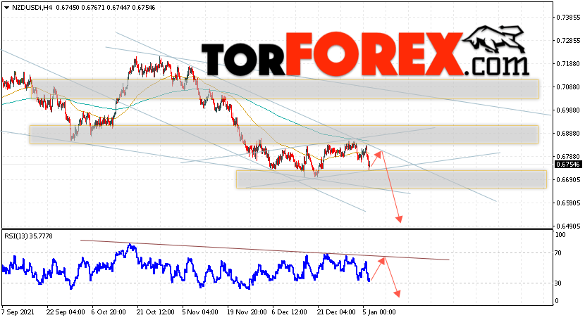 Таким образом, Форекс прогноз и аналитика NZD/USD на 7 января 2022 предполагает попытку теста области сопротивления вблизи уровня 0.6785. Откуда стоит ожидать продолжения падения котировок в область ниже уровня 0.6495. Дополнительным сигналом в пользу снижения выступит тест линии тренда на индикаторе относительной силы. Отменой варианта падения пары NZD/USD станет сильный рост цены и пробой уровня 0.6905. В этом случае стоит ожидать продолжение подъёма пары с потенциальной целью выше уровня 0.7205.
