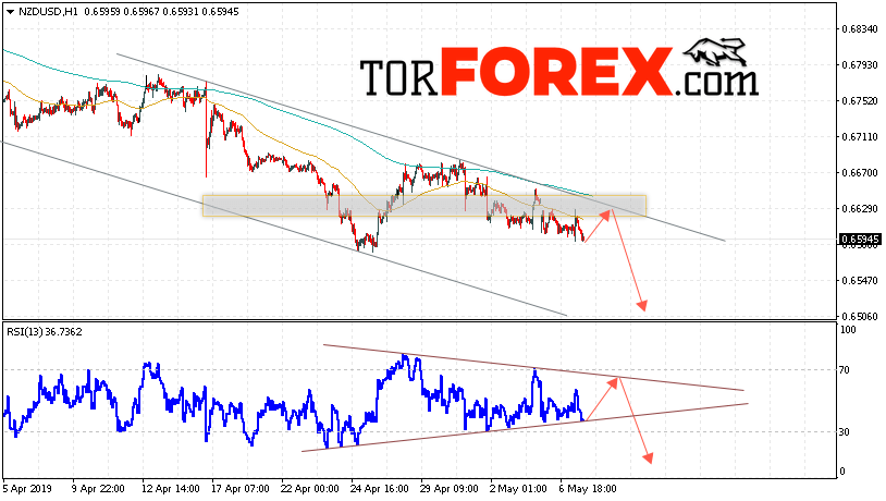 Таким образом, Форекс прогноз и аналитика NZD/USD на 8 мая 2019 предполагает попытку теста области сопротивления вблизи уровня 0.6630. Откуда стоит ожидать продолжения падения котировок в область ниже уровня 0.6505. Дополнительным сигналом в пользу падения выступит тест линии сопротивления на индикаторе относительной силы. Отменой варианта снижения пары NZD/USD станет сильный рост и пробой уровня 0.6675. В этом случае стоит ожидать продолжения подъёма пары с потенциальной целью выше 0.6805.