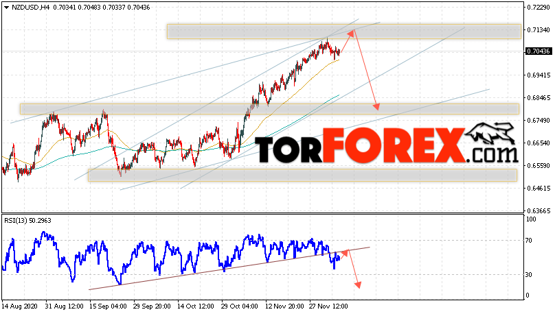 Таким образом, Форекс прогноз и аналитика NZD/USD на 9 декабря 2020 предполагает попытку теста области сопротивления вблизи уровня 0.7135. Откуда стоит ожидать продолжения падения котировок в область ниже уровня 0.6765. Дополнительным сигналом в пользу снижения выступит тест линии тренда на индикаторе относительной силы. Отменой варианта падения пары NZD/USD станет сильный рост цен и пробой уровня 0.7175. В этом случае стоит ожидать продолжение подъёма пары с потенциальной целью выше уровня 0.7475.