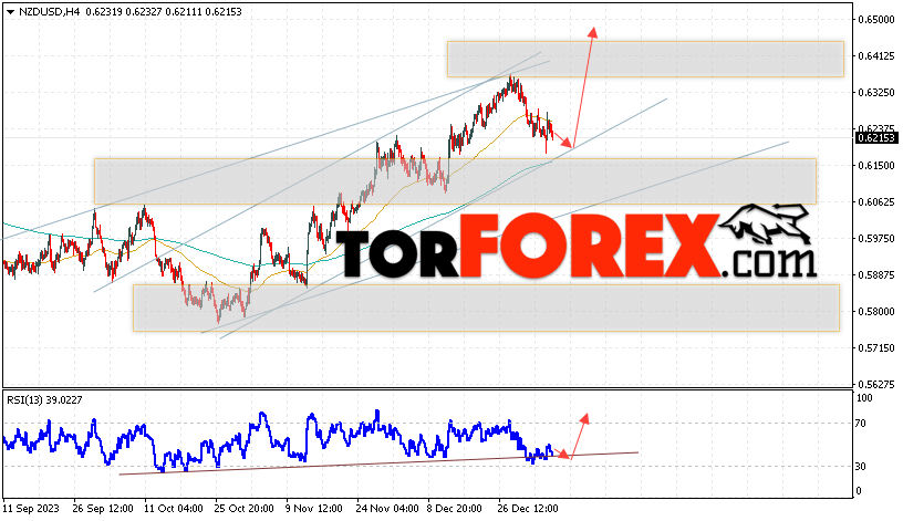 Таким образом, Форекс прогноз и аналитика NZD/USD на 9 января 2024 предполагает попытку теста области поддержки вблизи уровня 0.6175. Откуда стоит ожидать продолжения роста котировок в область выше уровня 0.6495. Дополнительным сигналом в пользу подъёма выступит тест линии тренда на индикаторе относительной силы. Отменой варианта роста пары NZD/USD станет падение цены и пробой уровня 0.6115. В этом случае стоит ожидать продолжение снижения пары с потенциальной целью ниже уровня 0.5905.