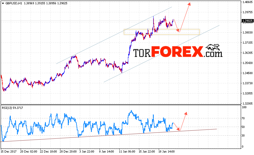 Таким образом, GBP/USD прогноз Фунт Доллар на 23 января 2018 предполагает попытку теста уровня поддержки 1.3800 и продолжение роста с целью выше уровне 1.4050, дополнительным сигналом в пользу роста Британского Фунта выступит тест линии поддержки на индикаторе относительной силы.