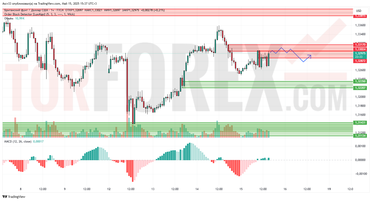 Ожидается краткосрочная консолидация с возможными откатами от 1,3300. Пробой выше 1,332 может открыть путь к 1,338. Однако в текущих условиях более вероятен сценарий флетового движения в диапазоне 1,328–1,331 с риском отката к 1,322 при отказе от пробоя.