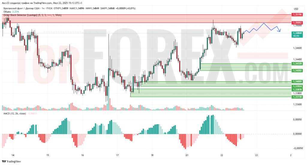 1.34328–1.34202 — первая зона возможной поддержки в случае отката; ниже находятся плотные покупательские зоны 1.34009–1.33738.